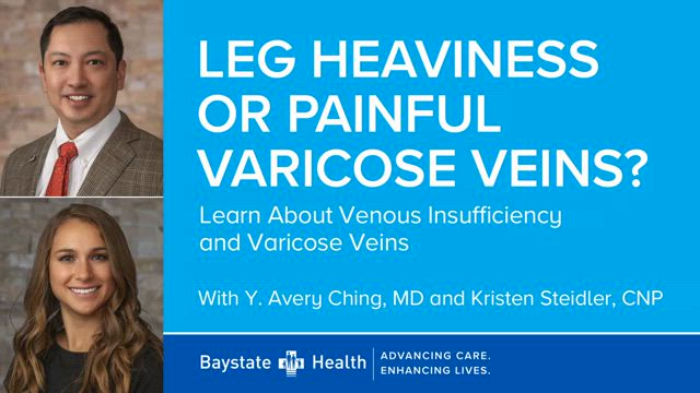 Are you experiencing leg aches, swelling, or discomfort? While there are many reasons for these symptoms, it could indicate the presence of venous insufficiency and/or varicose veins. These conditions can impact your quality of life. Join Dr. Y. Avery Ching, Endovascular Surgery, Vascular Surgery, and Kristen Steidler, CNP, Baystate Vascular Services, Heart & Vascular, and learn how these issues develop, their potential health implications, and explore effective, comprehensive treatment options.